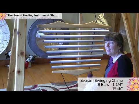 This pioneering musical instrument is one of SVARAM’s NEW WAVES innovations based on harmonic, just intonation Shruti tunings on C 256 Hertz. (Traditional A=440 tuned instruments have the C 261.6 Hertz with Equal temperament) The Chimes can be swung gently, rotated, traversed, looped, swayed around and over the body and create an immediately “touching“ experience of the magic of a spherical sound in its layered consistency and its wholesome harmonizing effect.