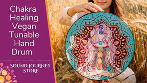 Our VEGAN hand drums are made in Moldova by a young artist. These lightweight drums are not affected by moisture, ensuring a beautiful tone at all times. They are tuneable, allowing you have your drum sing in tune with your voice or other instruments.