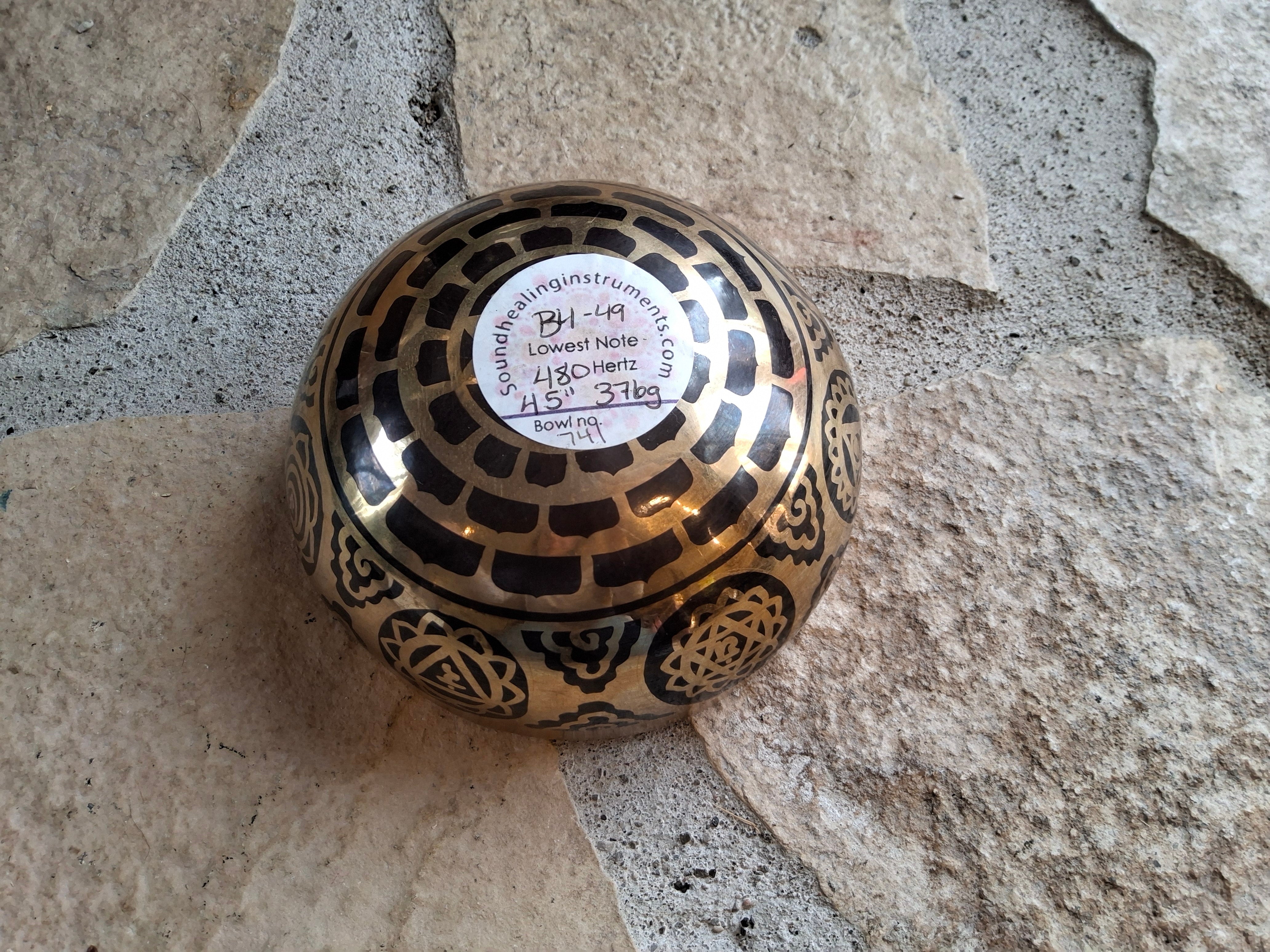 Bowl 741: 4.75" Thangka Artwork Himalayan Singing Bowl 185 HZ B4-49