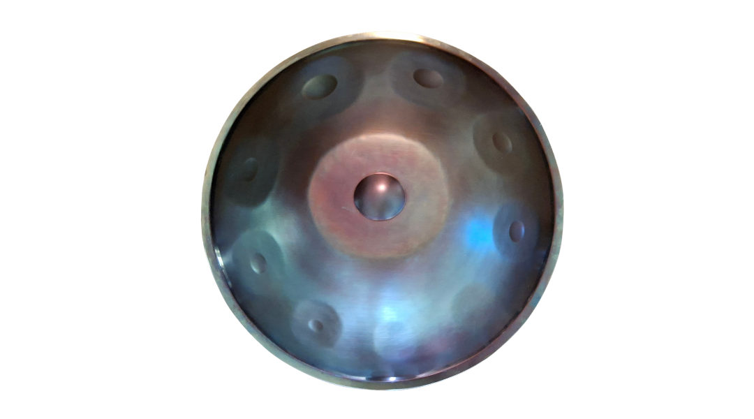 Discover the unique sound and craftsmanship of this hand-hammered stainless steel PeacePan, a specific brand of handpan, expertly crafted by Luc Dupuis, a renowned Canadian handpan maker. Each instrument is meticulously handmade in Canada, ensuring that no two are ever exactly alike, making your handpan truly one of a kind.