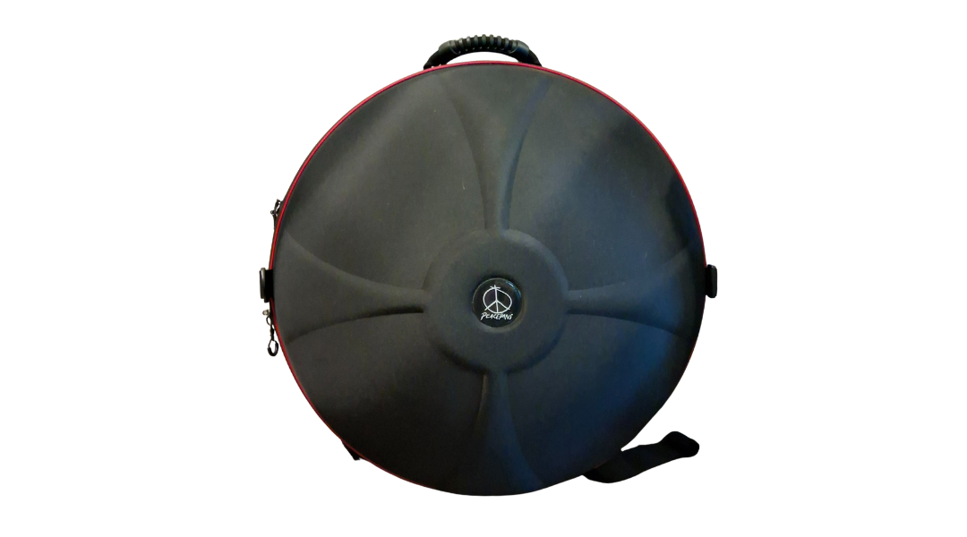 The 21" diameter of this particular handpan is a standard handpan size, making it compatible with many accessories, including stands and mics. It comes with a hard-shell carrying case. The 21" handpan is small enough to rest on the lap comfortably yet at the same time creates a deeper and more resonant sound than smaller instruments.